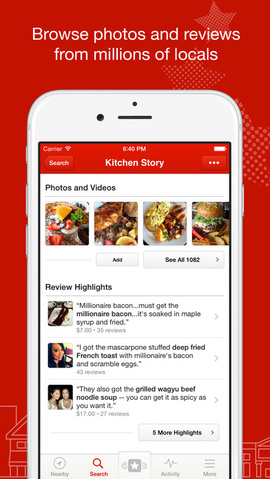 Top-ranked Yelp for your iPhone, iPad, and Apple Watch has over 100 million reviews on businesses worldwide! Whether you are looking for a pizzeria that is open now or a coffee shop nearby, Yelp is your local guide to finding just the place to eat, shop, drink, relax, and play