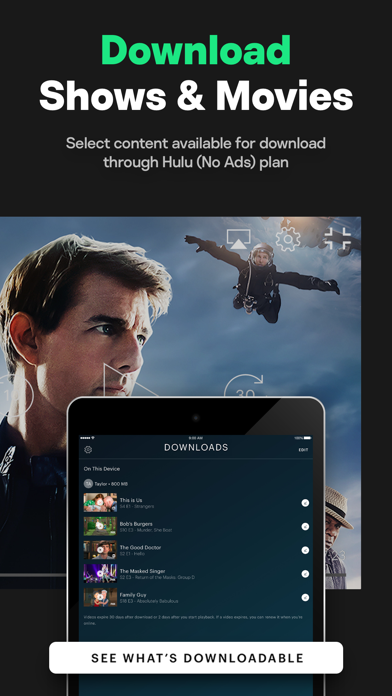 Hulu supports iPhone 4 and above; iPad 2 and above, iPod touch 4th generation and above, all running iOS 7 and above.