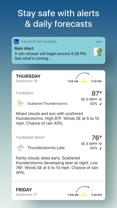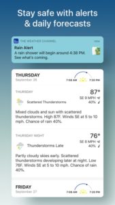–Rain Alerts: Avoid getting surprised by the rain with real-time alerts for your GPS location and morning rain reports for your favorite locations.
