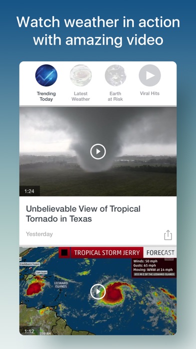 –Social Weather: Take pictures and share the amazing weather you experience, plus report it directly to us. Your reports help others track approaching weather. Geeky? Yes, and proud.