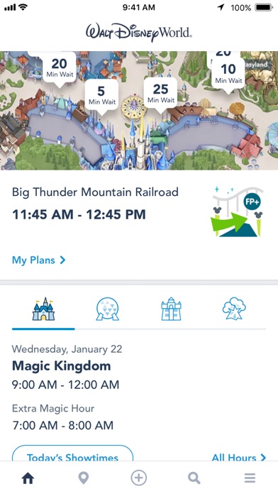 • Quickly access real-time wait times, park hours, Character greetings, parade showtimes and more.