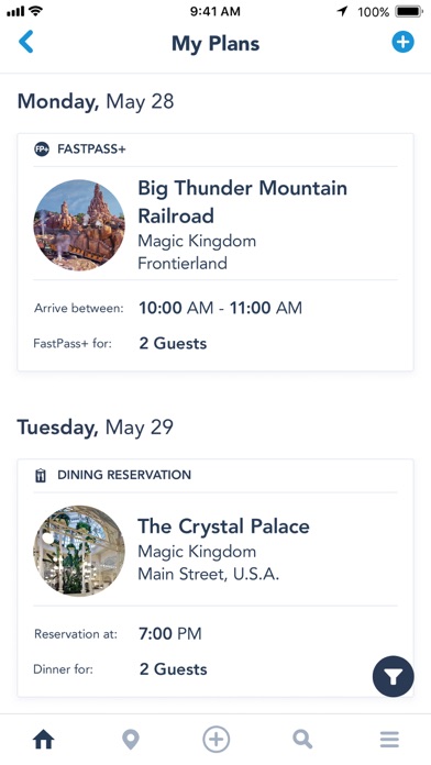 • Manage your Disney Resort reservations, tickets, MagicBands and cards.
