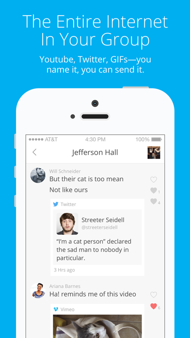 Add anyone to a group via their phone number or email address. If they don’t have the app, they can start chatting over SMS immediately.